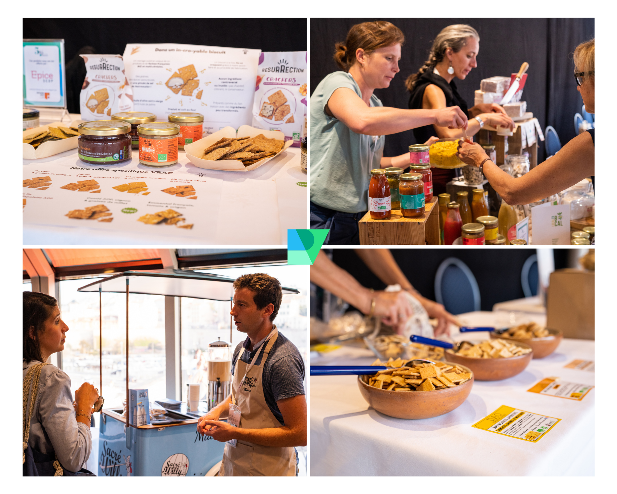 Lors des événements de l’association, Réseau Vrac a souhaité mettre à l’honneur certains de ses fournisseurs de la Région Sud. Dans cette optique, l’organisation des 5 ans de l’association à Marseille a été l’opportunité de retrouvailles entre adhérents, mais également de partage pour les fournisseurs qui ont offert et présenté leurs produits lors de ces deux jours. Ce fut l’occasion de découvrir les fournisseurs et produits de la Région Sud. Encore à un merci à : Koovee, DAO-Lou bio, Sacré Willy, Essentiel’Eau, Local en Bocal, Juste bio, Les Biolonistes, Nougats Silvain, Ô Chwette boissons, Epice Scop et Happy Hours en Biovallée.