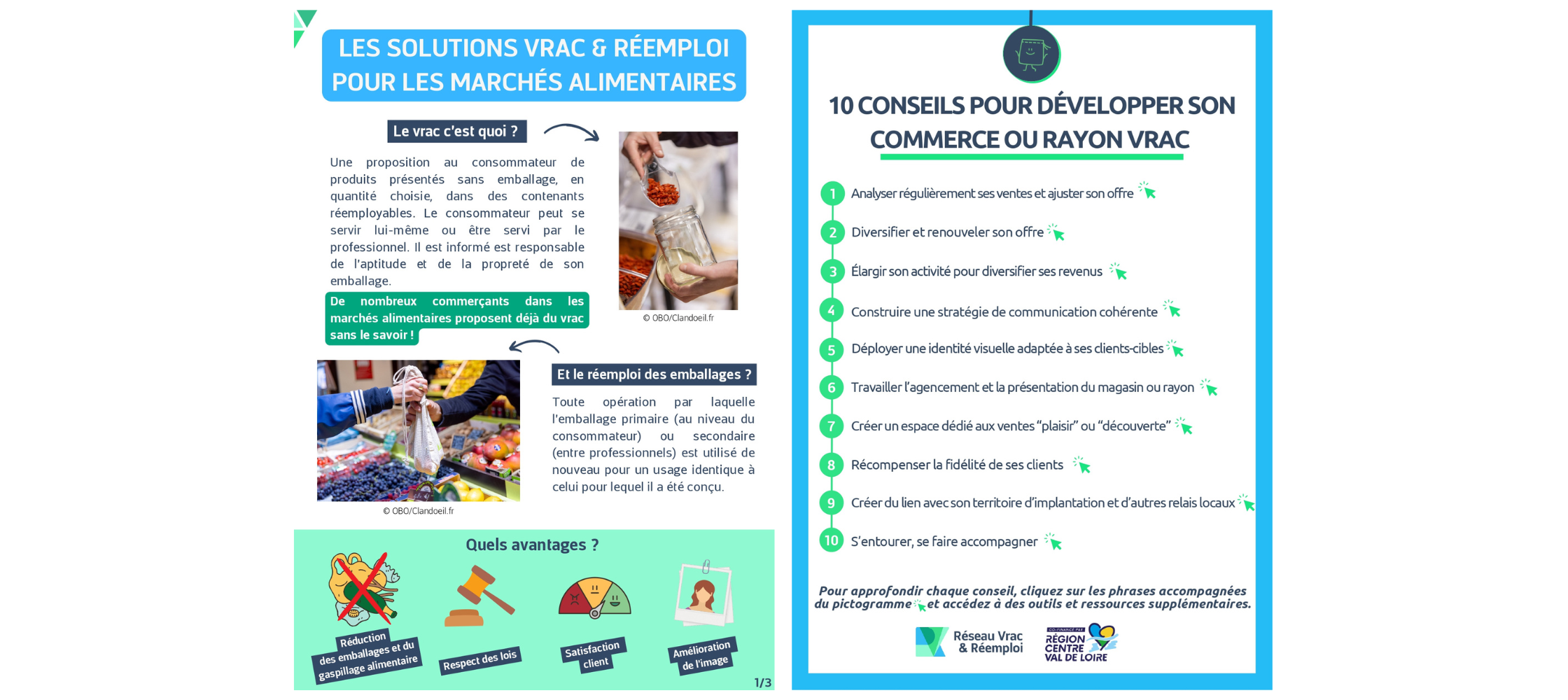 Deux nouveaux outils pratiques, une fiche-ressource sur les solutions vrac et réemploi dans les marchés alimentaires, et un livret de conseils pour développer son commerce ou rayon vrac, ont été imaginés par Réseau Vrac et Réemploi pour répondre à la demande du terrain.