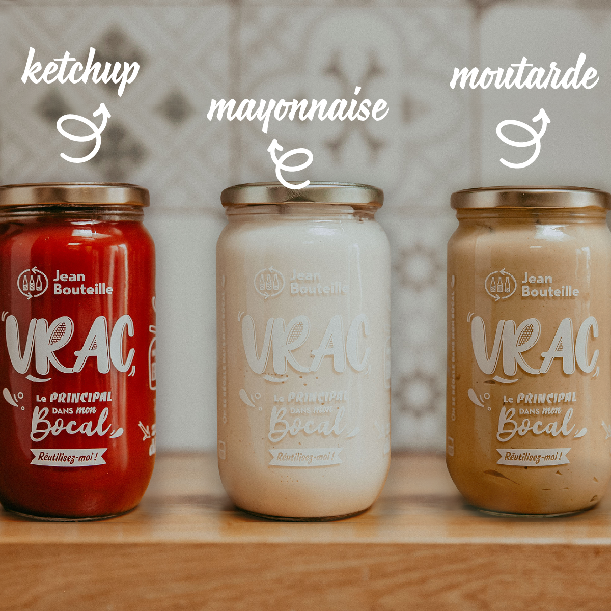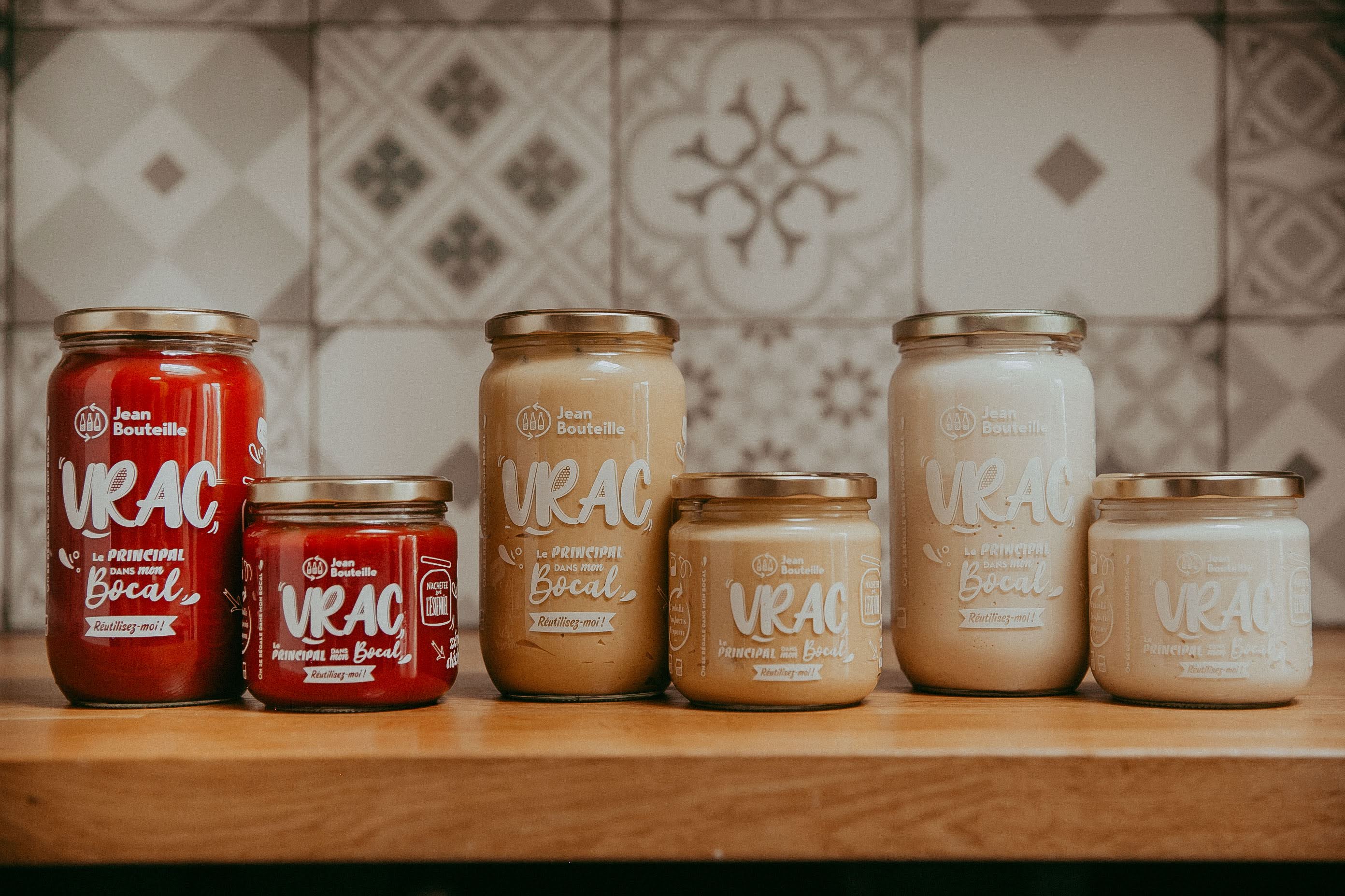 Les bocaux en question ? Ce sont les contenants des différentes confitures et sauces du quotidien (ketchup, moutarde…) qui n’étaient pas encore disponible en format vrac. La volonté de Jean Bouteille ? permettre aux consommateurs de trouver tous ces produits près de chez eux dans les épiceries et vrac & magasins bio.