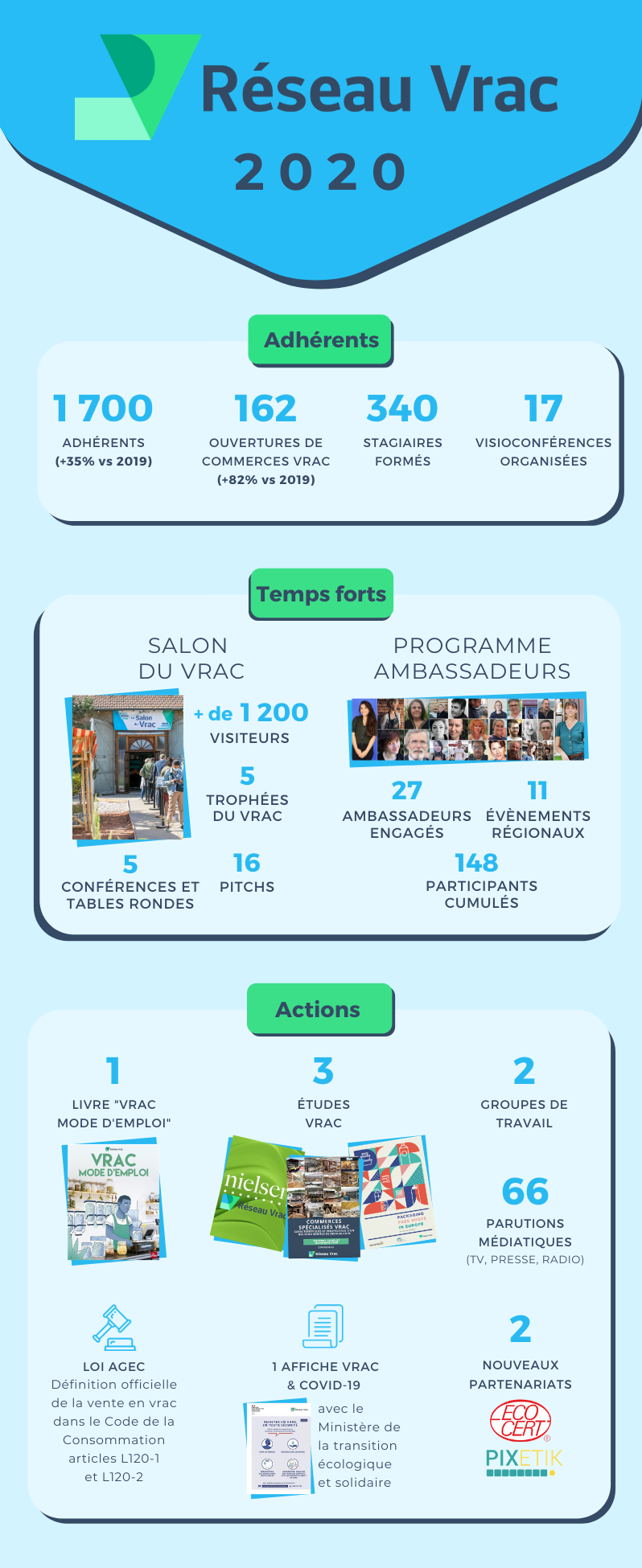 A l’occasion des fêtes de fin d’année, Réseau Vrac a souhaité vous porter une petite attention en partageant cette infographie exclusive sur les chiffres clés de l’année 2020 et les temps forts de Réseau Vrac afin que vous soyez incollable avec vos proches sur les actions de l’association !