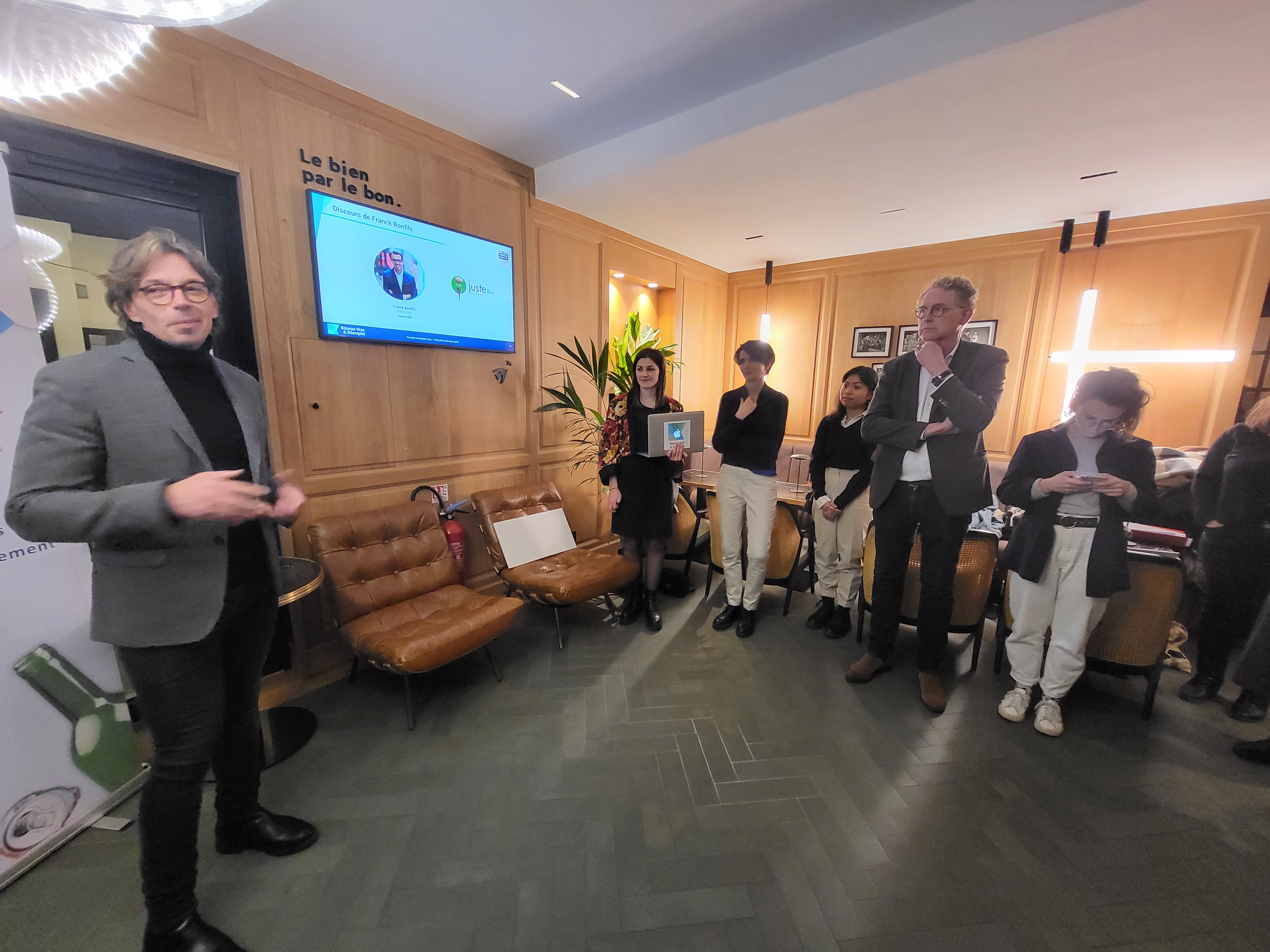 La révélation des gagnants a été faite lors de la cérémonie de clôture du 6 décembre au Bar Oé. Franck Bonfils (Président de Juste Bio), Patrick Bariol (DG de Leko) et Yann Wehrling (VP de la Région Ile-de-France à la transition écologique, au climat, la biodiversité et l’économie circulaire) ont dévoilés le nom des 3 lauréats :