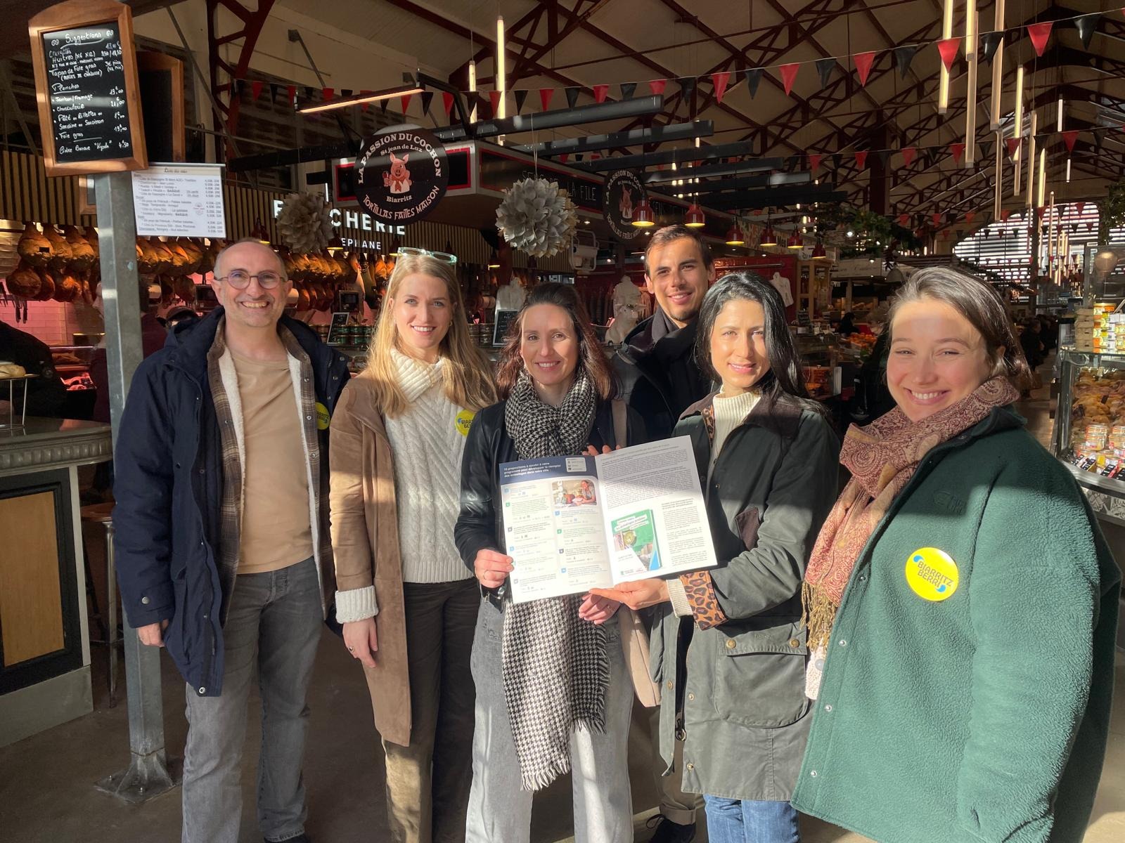 Célia Rennesson s’est rendue à Biarritz puis à Anglet, accompagnée d’adhérents du réseau, Maël Ramangalahy pour Les Retournées et Sébastien Leflond pour Mayam. À Biarritz, aux Halles, aux côtés d’Ana Ezcurra et de son équipe, les échanges avec les commerçants ont mis en lumière des pratiques déjà engagées (apport de contenants, consigne) et la volonté de structurer une boucle locale de réemploi à l’échelle du marché. Dans une ville touristique fortement exposée aux variations saisonnières de déchets, des pistes concrètes émergent pour le prochain mandat.