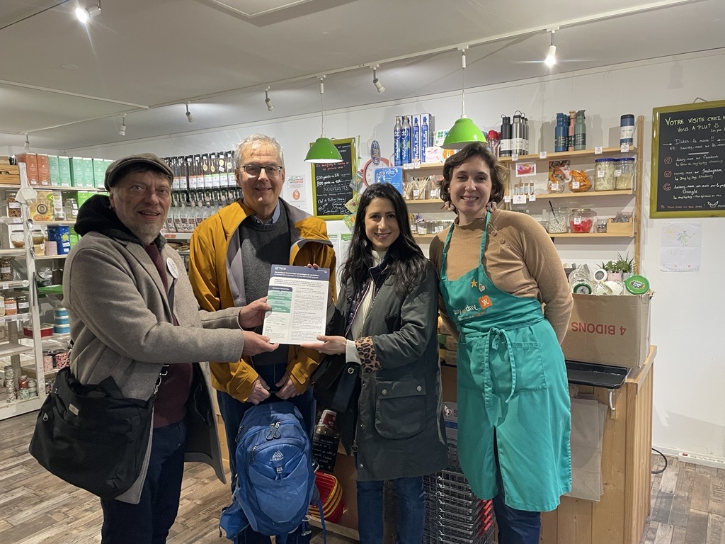 Le 2 février, Célia Rennesson s’est rendue à Nantes sur l’invitation de Johanna Rolland, candidate à sa propose réélection. Dans l’épicerie vrac de Lise Peschet, Pile Poids (adhérente RVR), Célia et Célie Couché, fondatrice de Bout à Bout et administratrice de l’association ont pu échanger avec la candidate et ses colistiers Mahel Coppey et Francky Trichet.