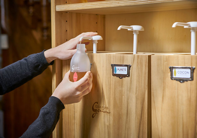 Mi-2021, nous avons enfin lancé notre offre vrac. Un concept clé en main et unique dans le monde de la coiffure ! Il a tout de suite été adopté par nos coiffeurs partenaires. Plus de 300 coiffeurs Couleurs Gaïa proposent aujourd’hui le vrac ou la recharge de nos produits.
