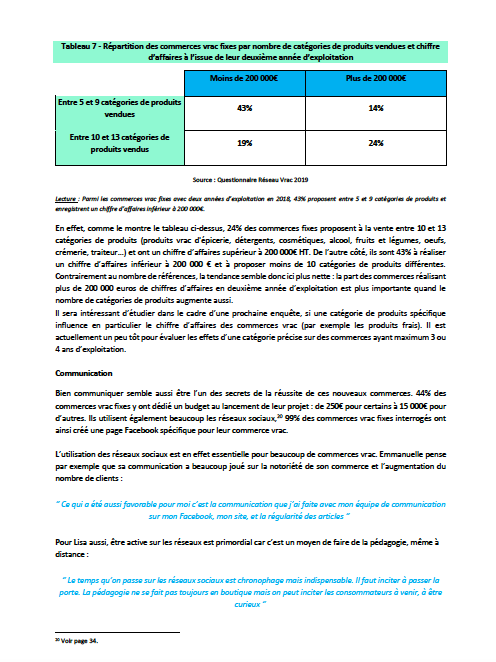 L’étude porte sur les commerces vrac fixes et itinérants. Elle ne se penche pas sur les commerces en ligne ou les drives.