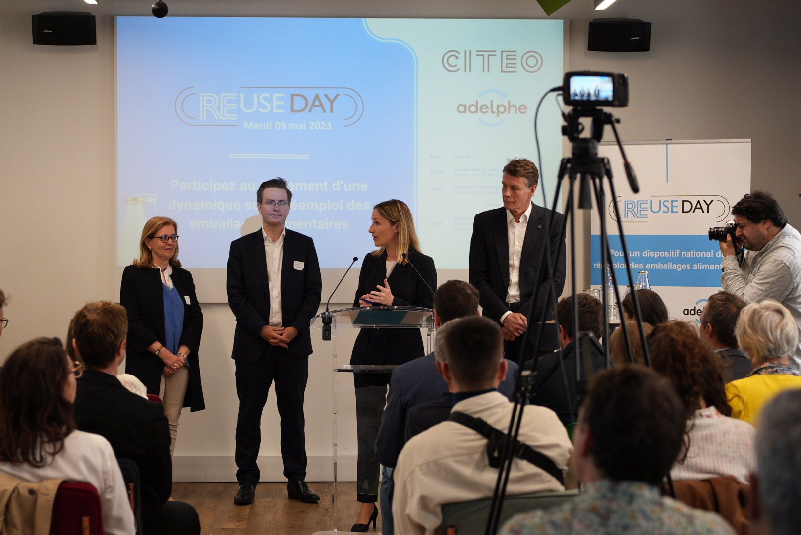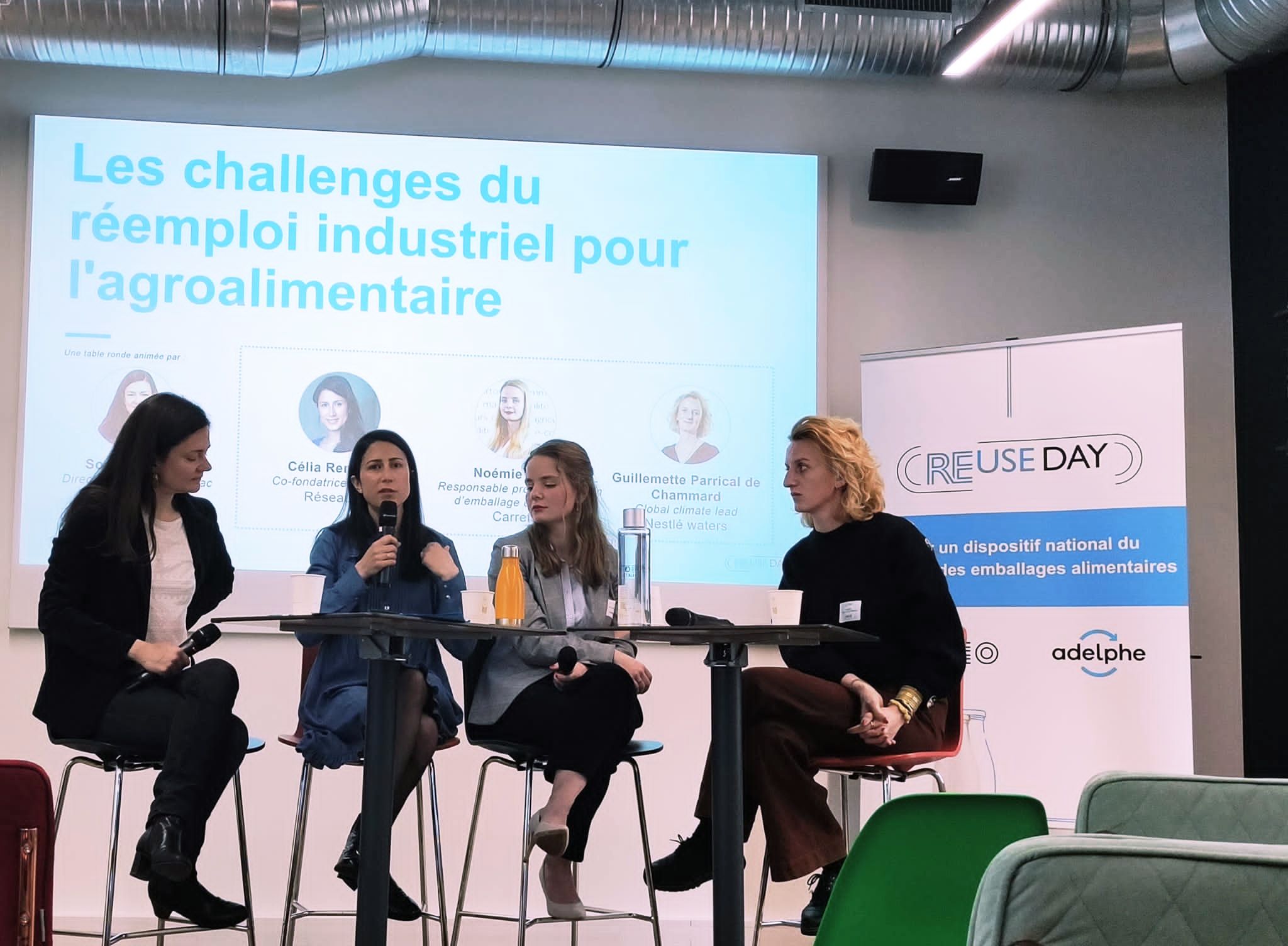 Célia Rennesson, co-fondatrice et directrice générale de l’association intervenait aux côtés de Guillemette de Chammard (Global Climate Lead chez Nestlé Waters), Noémie Perrot (Ingénieure spécialisée emballages et systèmes de consigne chez Carrefour) et Sophie Nguyen Buu Cuong (Responsable développement de solutions pour le réemploi et le vrac chez Citeo).