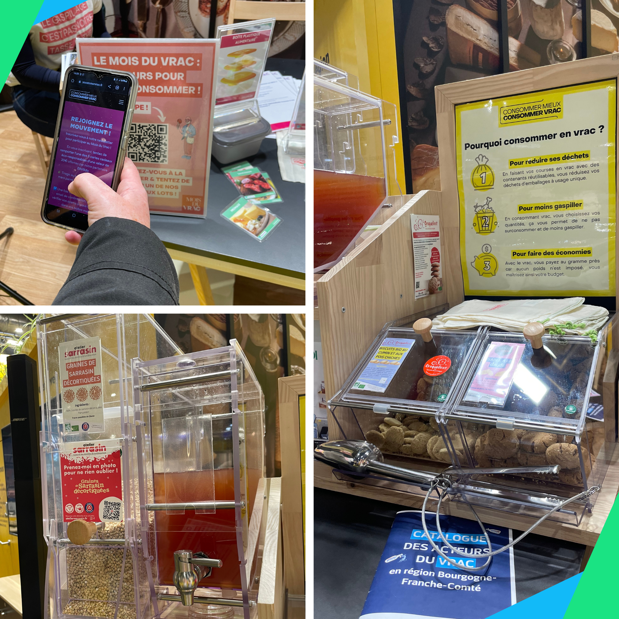 En faisant découvrir la diversité des produits régionaux disponibles en vrac en Bourgogne-Franche-Comté (comme la sauce soja, les légumineuses comme le quinoa, les graines de sarrasins ou encore la moutarde), nous avons présenté le vrac comme une réponse à de nombreux enjeux actuels :