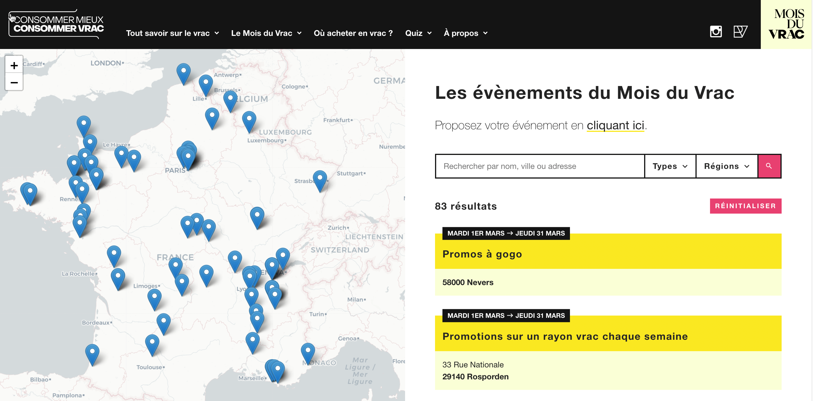 Le 1er mars, Réseau Vrac a lancé une nouvelle plateforme consommervrac.fr, pour engager une démarche d’information auprès du grand public. Les consommateurs auront un outil pour tout savoir sur le vrac et ce tout au long de l’année (comment consommer en vrac, pourquoi consommer en vrac, etc.).